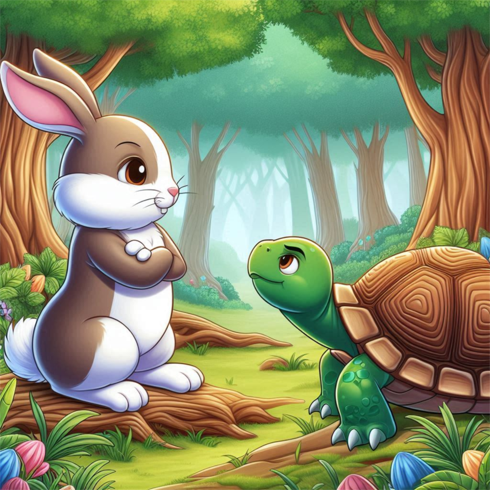Ngày xửa ngày xưa, có một con Rùa và một con Thỏ sống trong một khu rừng xinh đẹp và yên tĩnh. Ngày ngày chúng vui chơi với nhau như hai người bạn thân. Một hôm, Thỏ và Rùa cãi nhau xem ai nhanh hơn.