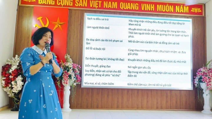 Mở đầu chương trình là chuyên đề : “Hơn cả yêu thương” do đồng chí Vũ Thị Song An chủ trì rất hay và ý nghĩa giúp cho chúng tôi chia sẻ, đồng hành, thấu hiểu, gần gũi con mình và học sinh của mình hơn