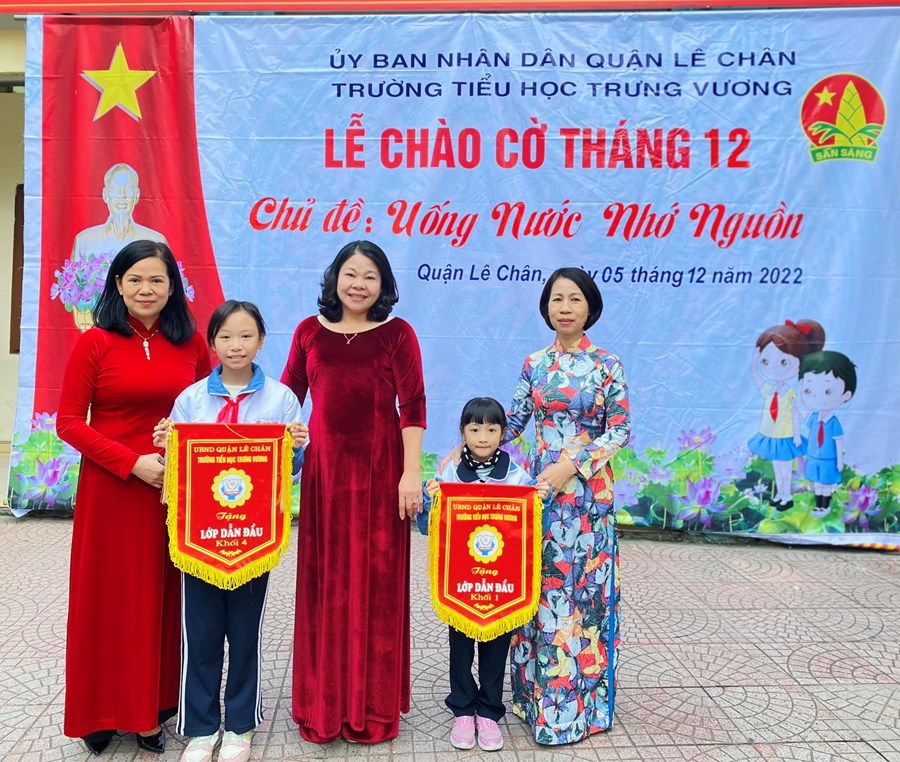 Tại buổi GDTT đầu tháng 12, BGH nhà trường đã trao Cờ thi đua xuất sắc nhất khối trong tháng cho 5 đại diện các lớp được tuyên dương.