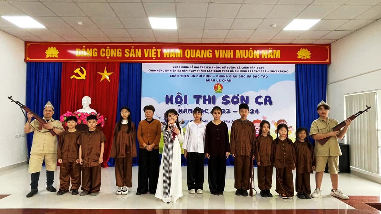 Hòa chung với không khí sôi nổi của Tháng thanh niên và kỉ niệm 93 năm Ngày thành lập Đoàn Thanh niên Cộng sản Hồ Chí Minh (26/3/1931 - 26/3/2024); 83 năm ngày thành lập Đội TNTP Hồ Chí Minh (15/5/1941 - 15/5/2024) thực hiện kế hoạch số 36/KH-LN của Quận đoàn quận Lê Chân về việc tổ chức và tham gia Hội thi “Sơn ca” các cấp năm học 2023 - 2024. Sáng ngày 01/03/2024 em Phạm Quỳnh Anh với bài hát: “ Biết ơn chị Võ Thị Sáu” và Phạm Hà My với bài: “Một vòng Việt Nam” học sinh lớp 5A6 tham gia Hội thi Sơn ca cấp Quận. Các tiết mục được đầu tư, chuẩn bị kĩ lưỡng từ trang phục, âm thanh, đến kỹ năng biểu diễn. Bằng sự miệt mài tập luyện, các em đã mang về cho gia đình, nhà trường, thầy cô và bè bạn những danh hiệu thật đáng tự hào, góp phần vào thành tích chung của trường. Chúc mừng cả hai em đều được chọn thi cấp Thành phố. Hội thi “Sơn ca” luôn là một sân chơi bổ ích không chỉ để tìm kiếm những tài năng nhí cho các nhà trường, quận và thành phố mà còn là một sân chơi để các bạn nhỏ thử sức với niềm đam mê của mình. Mong các em tiếp tục tập luyện, nỗ lực phấn đấu và chúc các em có phần trình diễn dự thi thành công tốt đẹp ở cấp Thành phố.