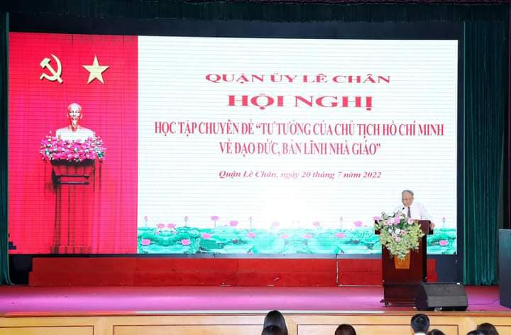 Chiều ngày 20/7/2022, cán bộ chủ chốt và GV Nhà trường đã dự ” Hội nghị học tập chuyên đề “Tư tưởng của Chủ tịch Hồ Chí Minh về đạo đức, bản lĩnh nhà giáo” do Quận ủy quận Lê Chân tổ chức cho cán bộ chủ chốt ngành Giáo dục và Đào tạo quận.