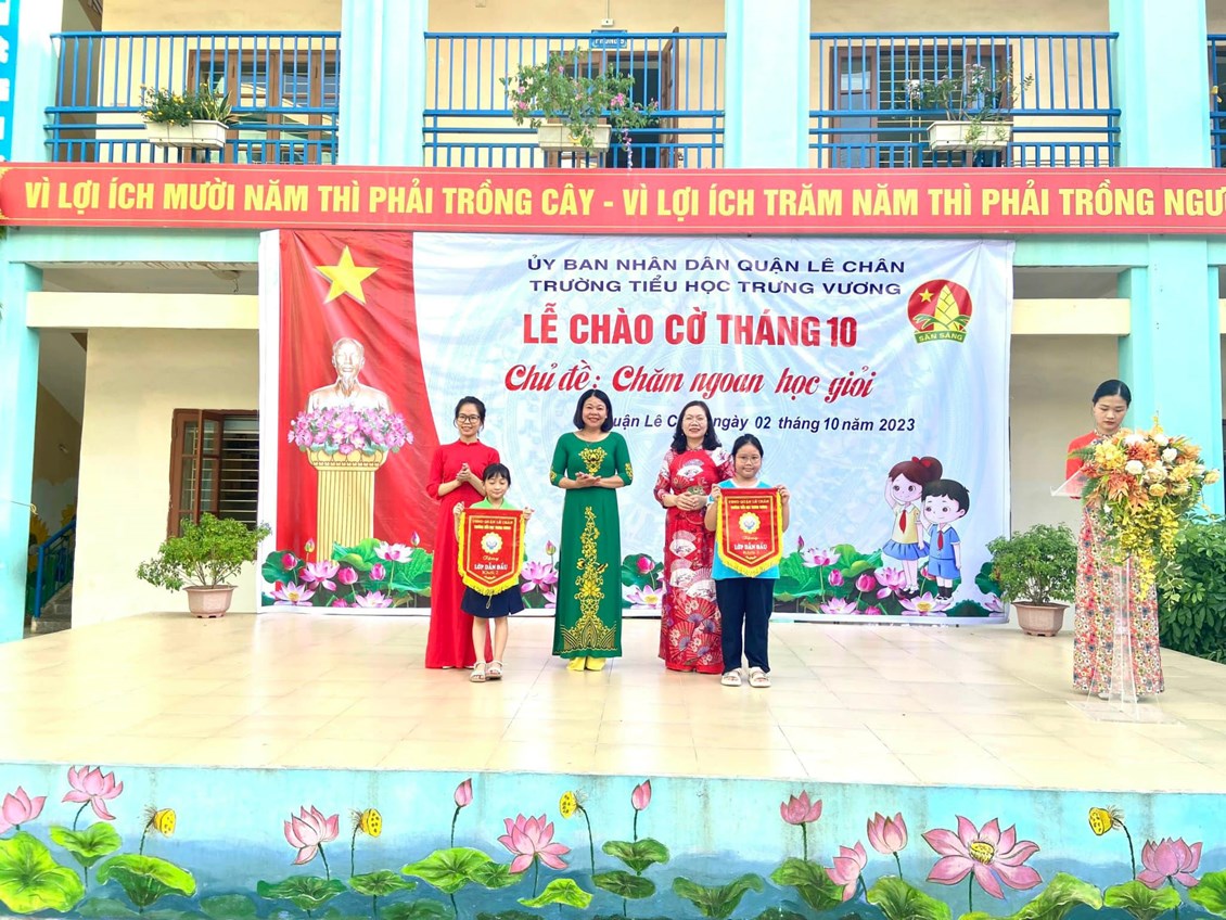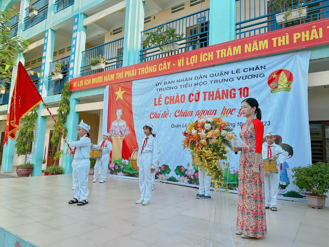 Thực hiện kế hoạch công tác Đội và phong trào thiếu nhi năm học 2023 - 2024 và chủ điểm hoạt động công tác Đội tháng 10 năm 2023, hôm nay Liên đội TH Trưng Vương tổ chức lễ chào cờ tháng 10.