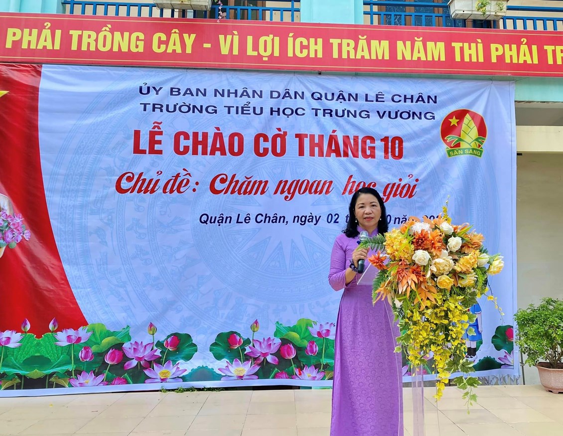Về dự với lễ chào cờ ngày hôm nay, có cô Đồng Thị Lan - Bí thư chi bộ, Hiệu trưởng nhà trường cùng các thầy cô trong BGH, Hội đồng giáo viên nhà trường. Và đặc biệt là sự có mặt của tất cả các em HS của trường Tiểu học Trưng Vương.