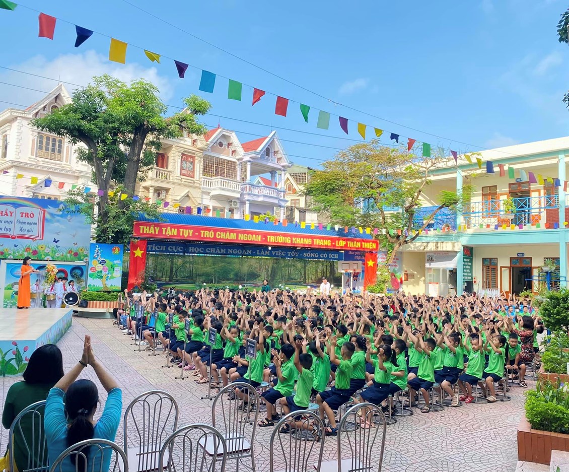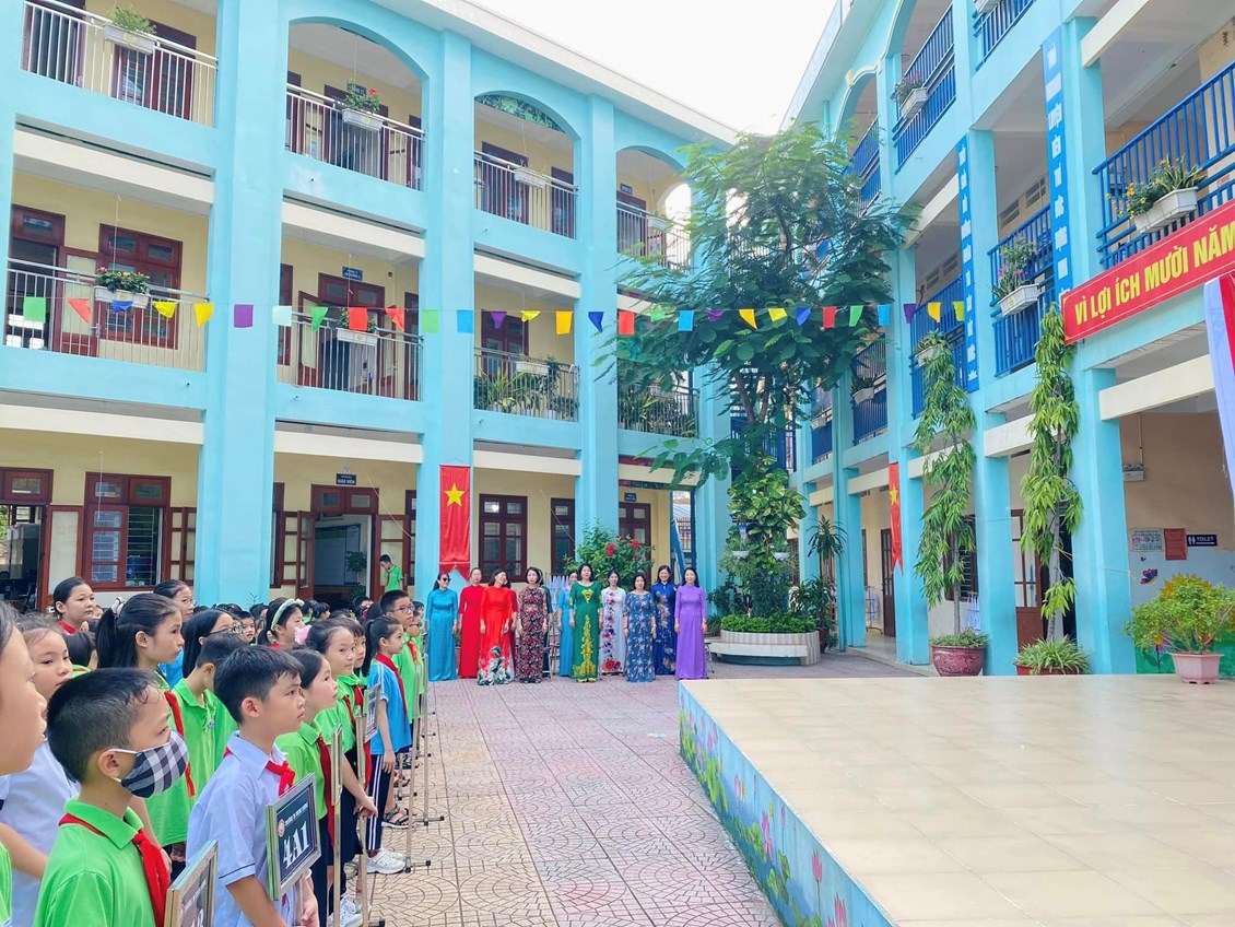 Phần nghi lễ chào cờ, hát Quốc ca, Đội ca diễn ra trong không khí trang trọng, cả trường đứng nghiêm, cùng hướng nhìn về lá cờ Tổ quốc đang tung bay trong gió. Sau phần nghi lễ là phần sơ kết các hoạt động Đội tháng 9 với chủ điểm “Truyền thống nhà trường” của cô giáo Tổng phụ trách.