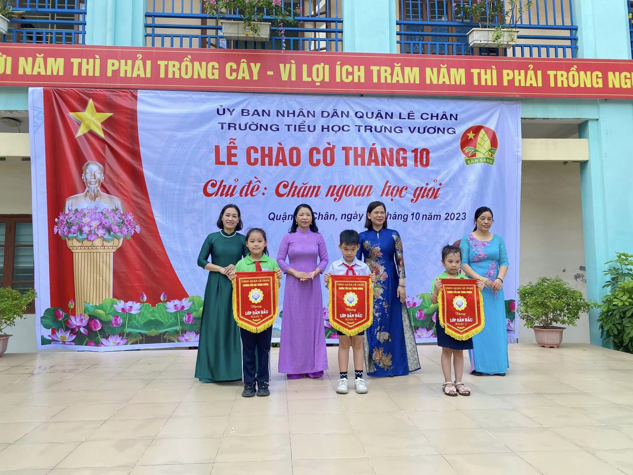 Xin chúc mừng các tập thể lớp vinh dự đạt thành tích xuất sắc dẫn đầu các khối lớp được nhận cờ thi đua từ tay cô Đồng Thị Lan - Bí thư chi bộ, Hiệu trưởng nhà trường và cô Trần Thị Huyến - Phó Bí thư, Phó Hiệu trưởng nhà trường trao cho với nhiều lời ngợi khen: