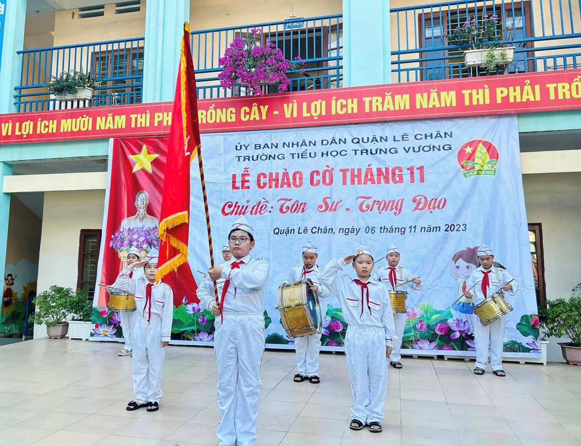 Giờ chào cờ đã khép lại trong không khí vui tươi, phấn khởi cùng quyết tâm thi đua của các em học sinh. Chúc các em học sinh trường Tiểu học Trưng Vương sẽ tiếp tục cố gắng phấn đấu để đạt kết quả cao hơn trong đợt thi đua tháng 11, tiếp nối truyền thống và bề dày thành tích của nhà trường.