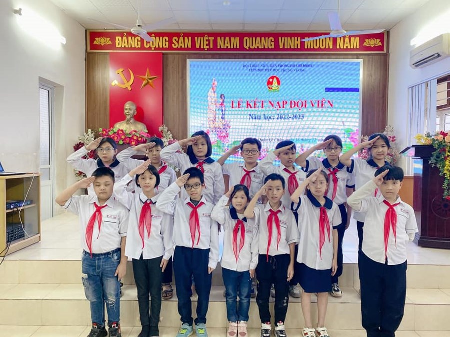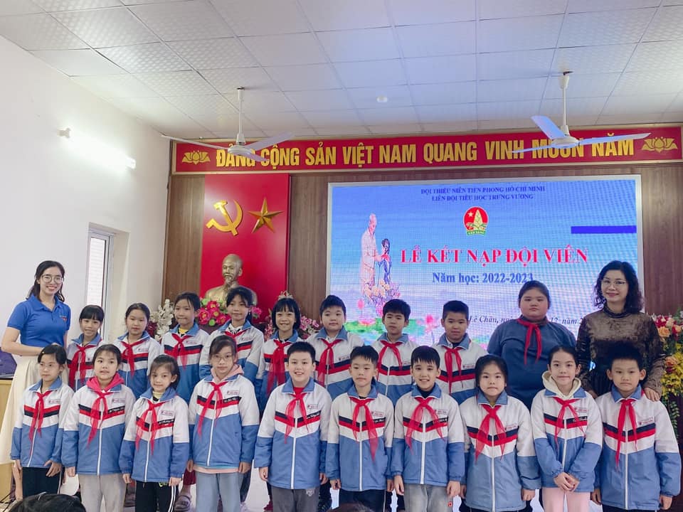 Thực hiện chương trình công tác Đội năm học 2022 - 2023, được sự nhất trí của Ban Giám hiệu nhà trường, ngày 16/12/2022 Liên đội Trường Tiểu học Trưng Vương đã long trọng tổ chức Lễ kết nạp Đội viên cho các em học sinh khối 3, 4, 5.