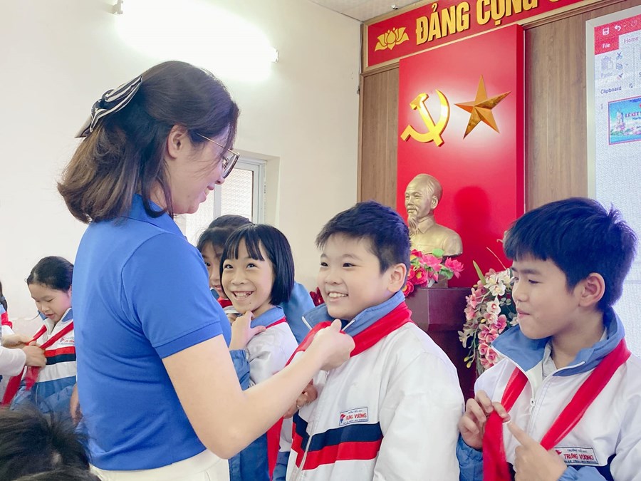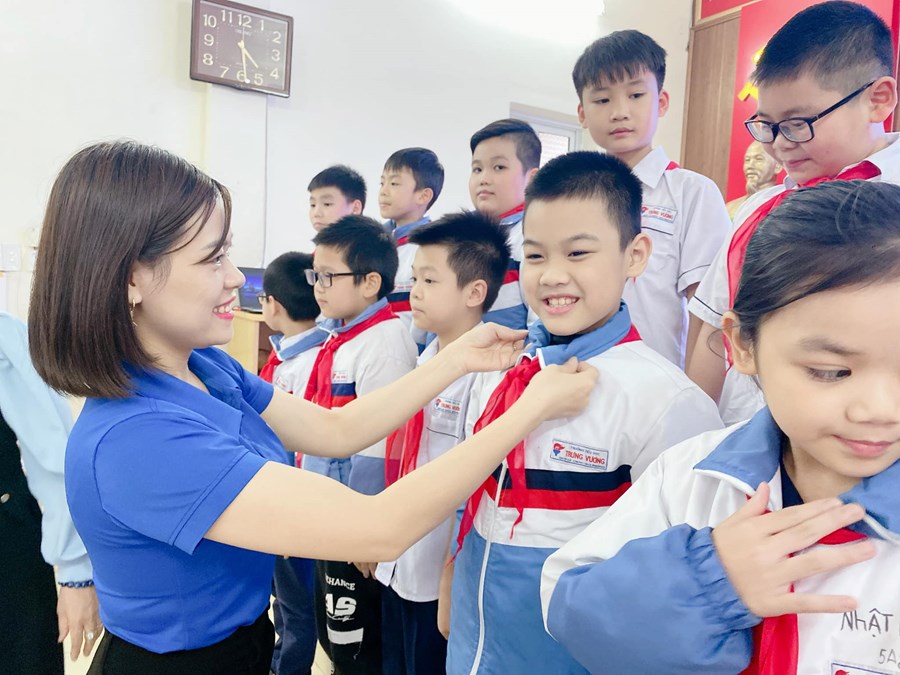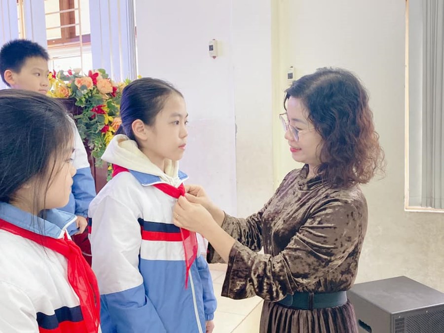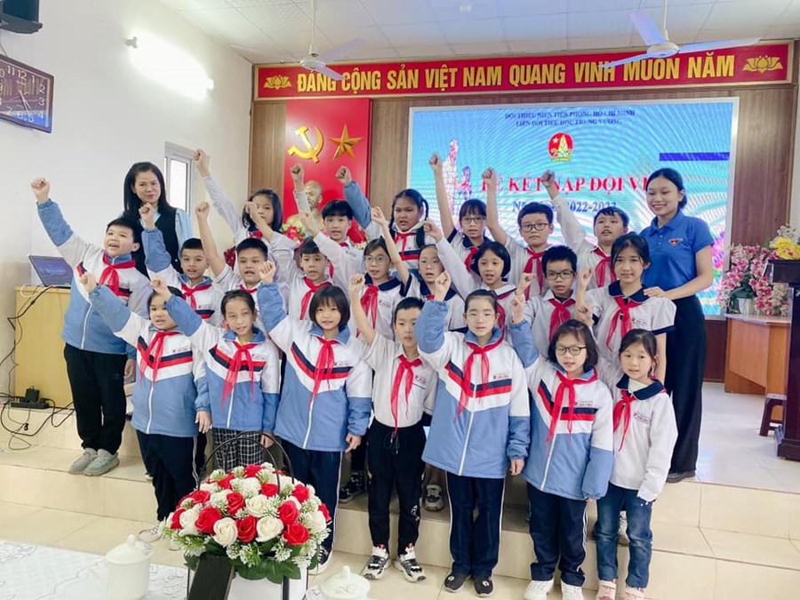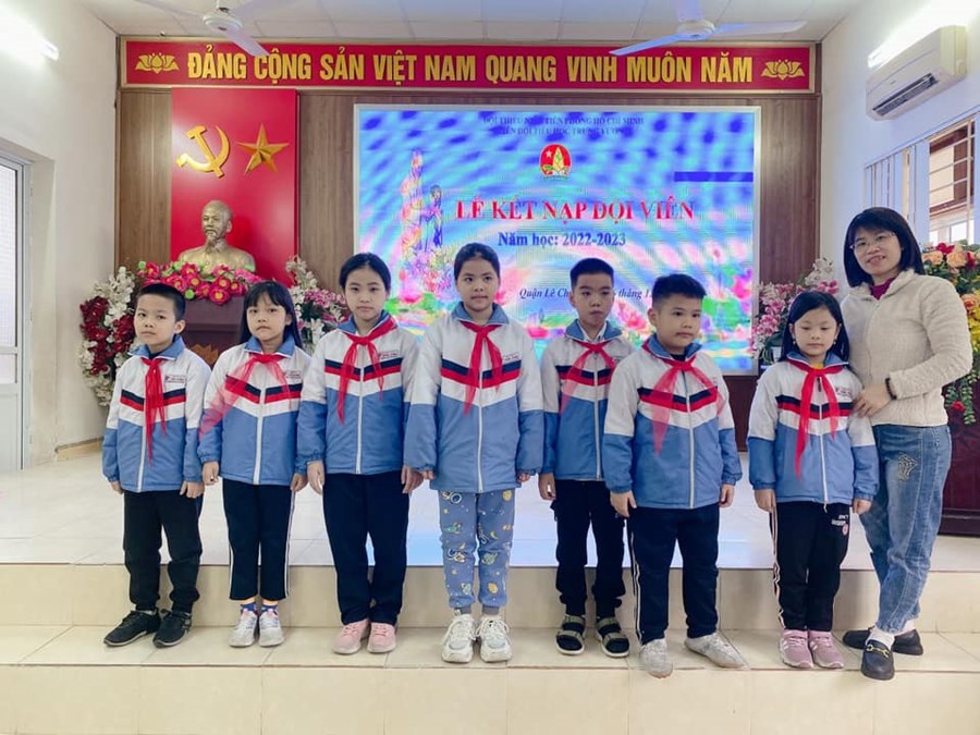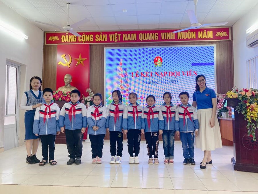 Các em được kết nạp Đội hôm nay là những nhi đồng chăm ngoan, có thành tích học tập tốt và tích cực tham gia phong trào, hoạt động của nhà trường. Sau phần đọc quyết định Kết nạp Đội của cô TPT, các bạn được các cô giáo phụ trách trao cho chiếc khăn quàng đỏ thắm. Được đứng trong hàng ngũ Đội Thiếu niên Tiền phong Hồ Chí Minh là vinh dự, niềm tự hào đối với các em vì kể từ hôm nay, các em được mang trên vai chiếc khăn đỏ thắm màu cờ Tổ Quốc. Màu khăn đỏ như nhắc nhở các em phải phấn đấu vươn lên không ngừng để trở thành Đội viên tốt, xứng đáng là con ngoan trò giỏi, cháu ngoan Bác Hồ. Giây phút thiêng liêng này sẽ là kỷ niệm đẹp của tuổi học trò của các em.