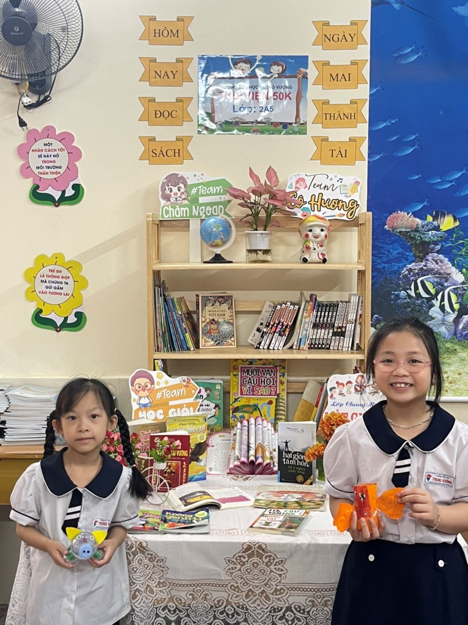 Các em ham thích đọc sách, tìm tòi những cuốn sách hay, những câu chuyện kì thú. Với chủ đề: "Sách luôn đồng hành cùng em" hai bạn học sinh lớp 2A5 đã giới thiệu đến tất cả mọi người cuốn sách "Dạy trẻ hành vi tốt" Cuốn sách này phù hợp với độ tuổi Tiểu học. Các chủ đề xoay quanh đời sống của trẻ giúp các em rèn luyện các kĩ năng ngay từ khi còn nhỏ tuổi và đưa ra những lời khuyên rất hữu ích dành cho các em. Ngày Hội đọc sách sẽ giúp các em dần hình thành thói quen đọc sách, có niềm đam mê với sách và đồng thời cũng là hành trang tốt nhất của các em cho tương lai.