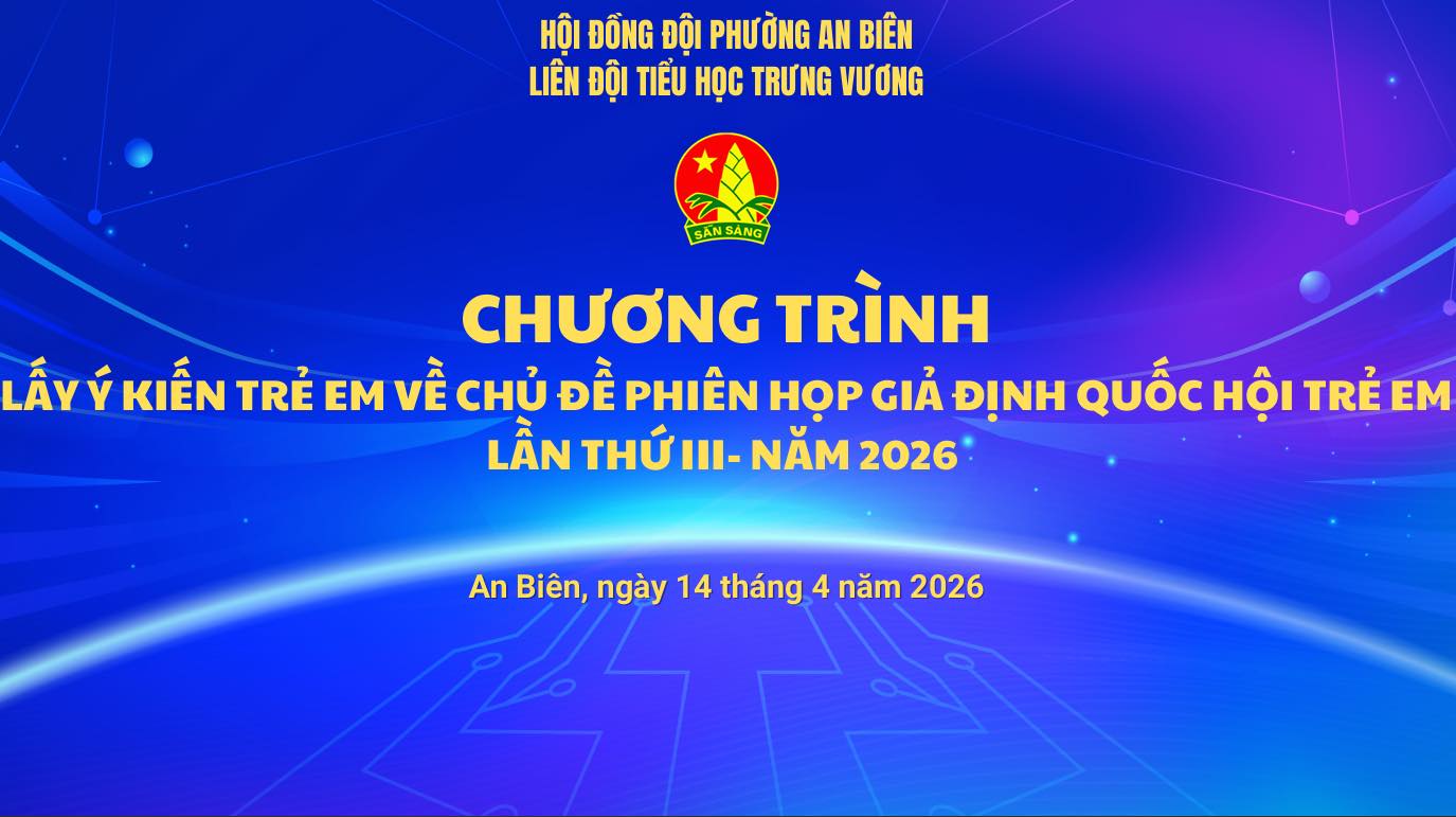 Thực hiện sự chỉ đạo của Hội đồng Đội các cấp về việc triển khai phiên họp giả định “Quốc hội trẻ em” lần thứ III, Liên đội Trường Tiểu học Trưng Vương chính thức phát động đợt khảo sát lấy ý kiến từ các bạn đội viên, nhi đồng trong toàn trường.