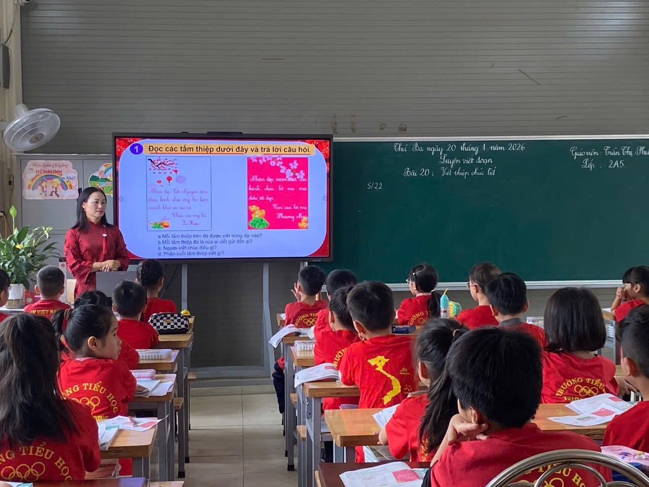 Trong tiết Luyện viết đoạn – Bài 20: Viết thiệp chúc Tết, cô giáo Trần Thị Phương đã vận dụng linh hoạt và sáng tạo kĩ thuật dạy học “Bể cá”, kết hợp tổ chức các hoạt động học tập khoa học, phù hợp với đặc điểm tâm lí lứa tuổi học sinh. Qua đó, tiết học đã xây dựng được một môi trường học tập thân thiện, tích cực và giàu cảm hứng.