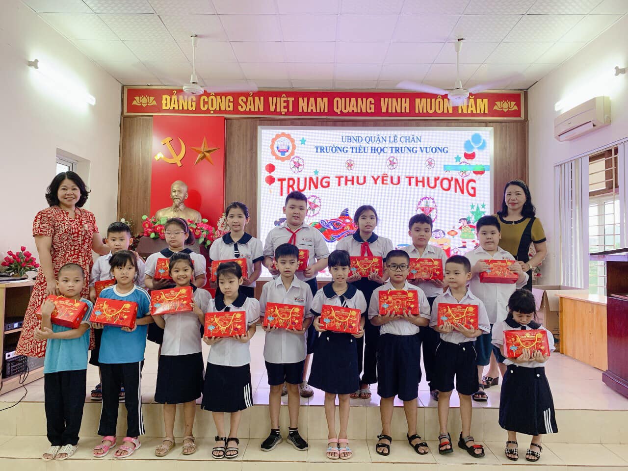 Được sự quan tâm của các cấp lãnh đạo, Ban giám hiệu nhà trường và Hội cha mẹ học sinh, ngày 08/ 09/2022 (Tức ngày 13/ 08 âm lịch), trường Tiểu học Trưng Vương đã tổ chức trao quà cho HS có hoàn cảnh khó khăn, hoàn cảnh đặc biệt, trẻ khuyết tật nhân dịp Tết Trung Thu. Mỗi em đều có một hoàn cảnh khác nhau nhưng các em đều là những HS ngoan, vượt mọi khó khăn để vươn lên trong học tập và rèn luyện. 57 suất quà được trao đi với mong muốn các em được đón Tết Trung thu ấm áp, vui tươi và trọn vẹn.