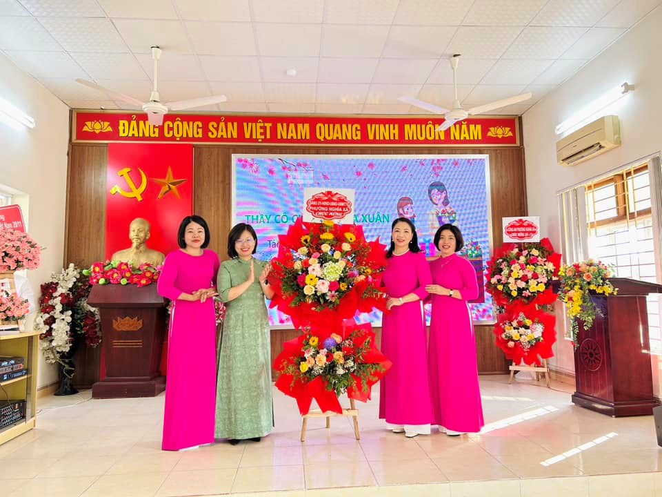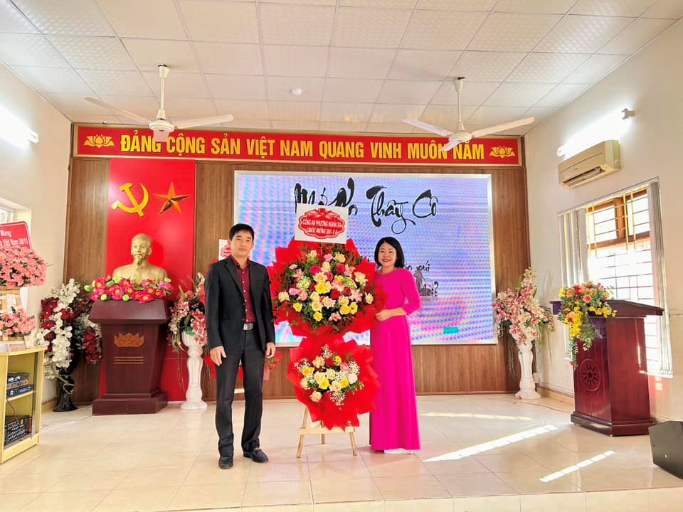 Đến dự với buổi lễ, nhà trường rất vinh dự đón tiếp đoàn đại biểu đại diện cho Đảng ủy-UBND-HĐND phường Nghĩa Xá do đồng chí Lê Thị Thanh Bình - Phó Chủ tịch HĐND, đồng chí Phạm Trung Bình - Chủ tịch MTTQ phường Nghĩa Xá, các đồng chí nguyên là cán bộ quản lí, các thế hệ nhà giáo đã từng công tác làm việc tại ngôi trường, đại diện Hội cha mẹ học sinh cùng đông đảo các thầy cô giáo và các em học sinh đại diện cho hơn nghìn học sinh trong trường.